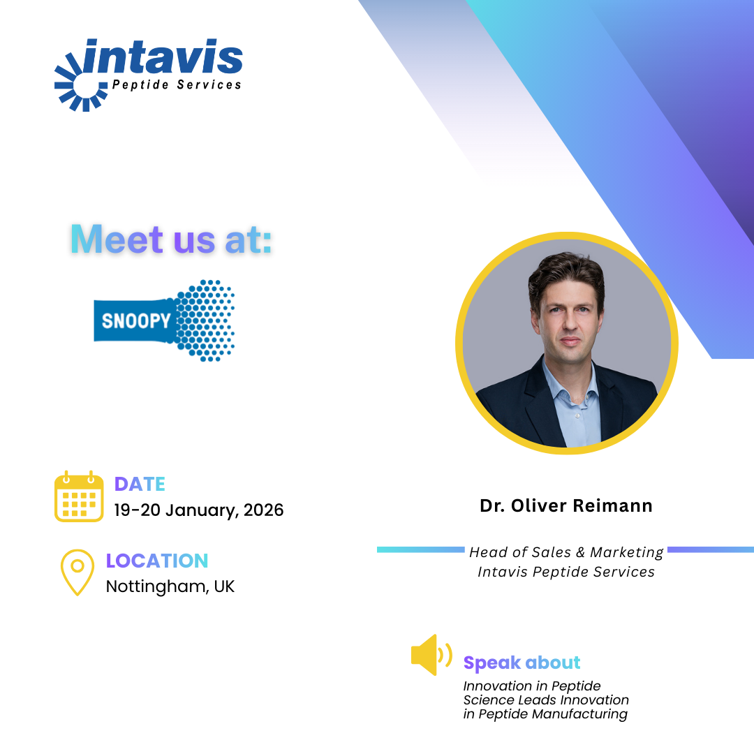Intavis Peptide Services freut sich, am SNOOPY WG2 Meeting 2026 teilzunehmen, das am 19.–20. Januar 2026 an der School of Chemistry der University of Nottingham, Vereinigtes Königreich, stattfindet.
