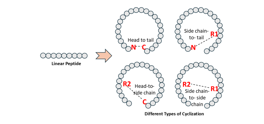 - Head-to-tail cyclization: The most common form, involving the formation of an amide bond between the N-terminal amine and the C-terminal carboxyl group