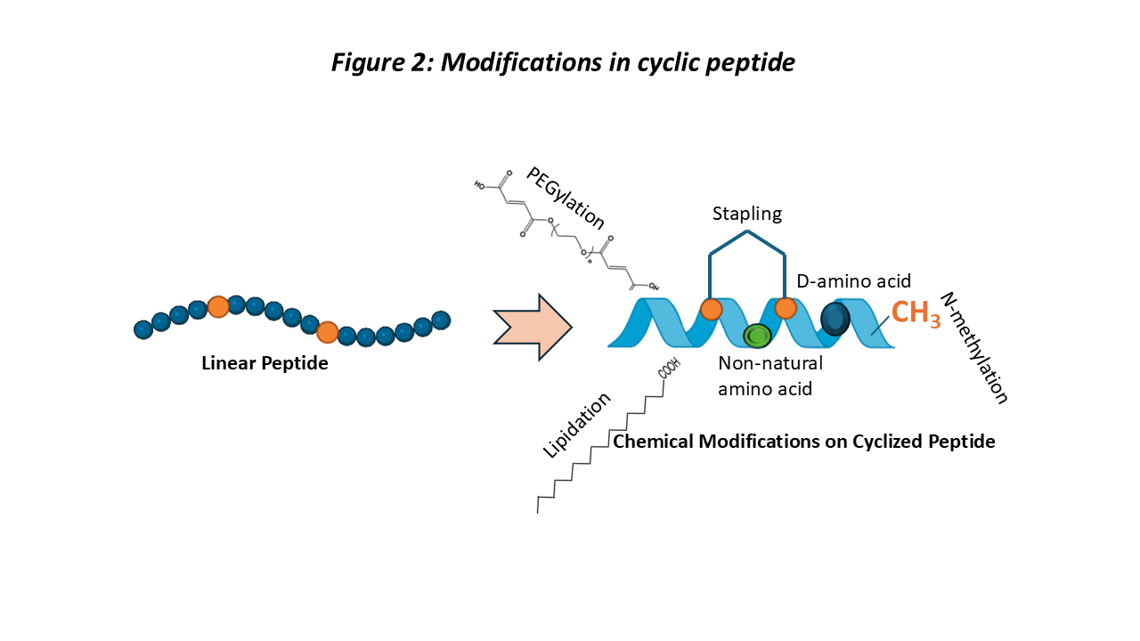 - Antibody-peptide conjugates are being explored to combine targeting specificity with cyclic peptide bioactivity