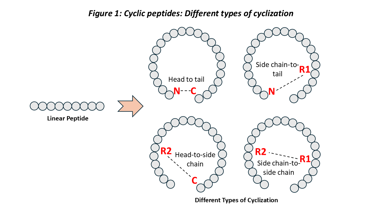 This blog aims to review the structure, modifications, and therapeutic applications of cyclic peptides, drawing from key developments in recent research and highlighting their increasing relevance as a modality in therapeutic innovation.