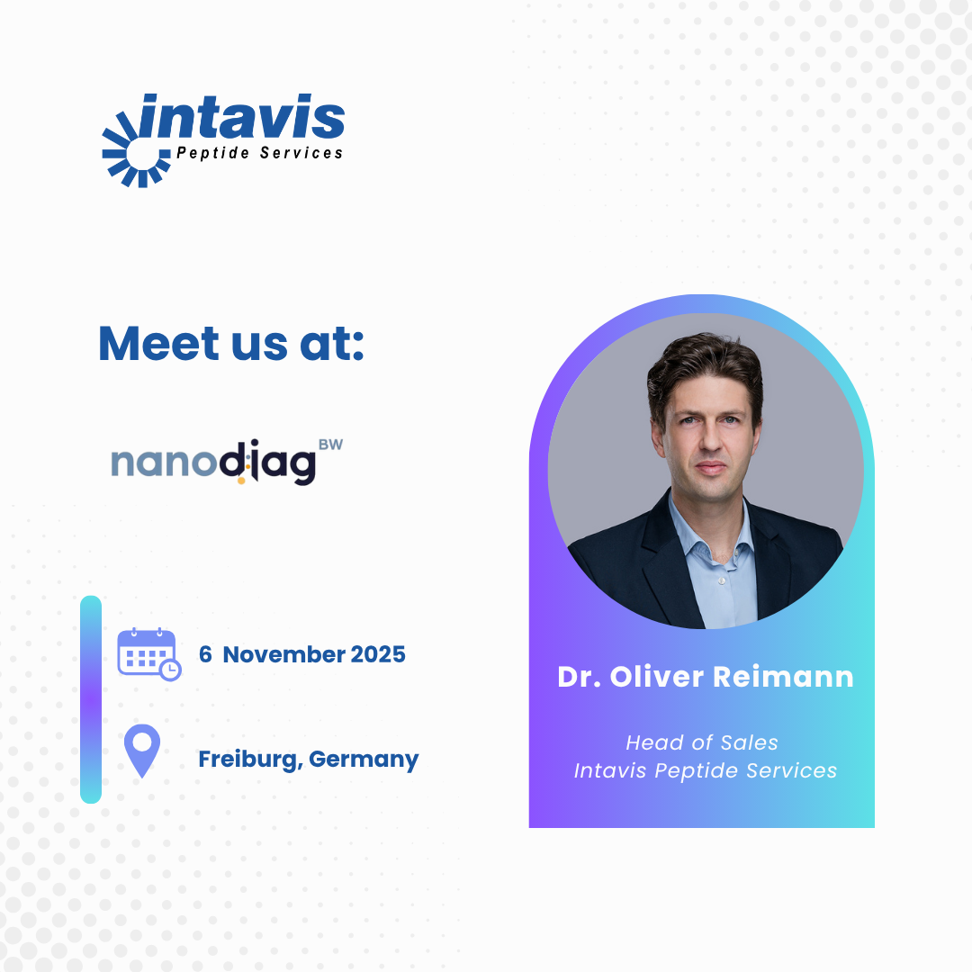 Intavis Peptide Services is pleased to participate in the NanoDiag Meeting 2025, taking place on November 6, 2025, at the Fraunhofer Institute for Applied Solid State Physics (IAF) in Freiburg, Germany.