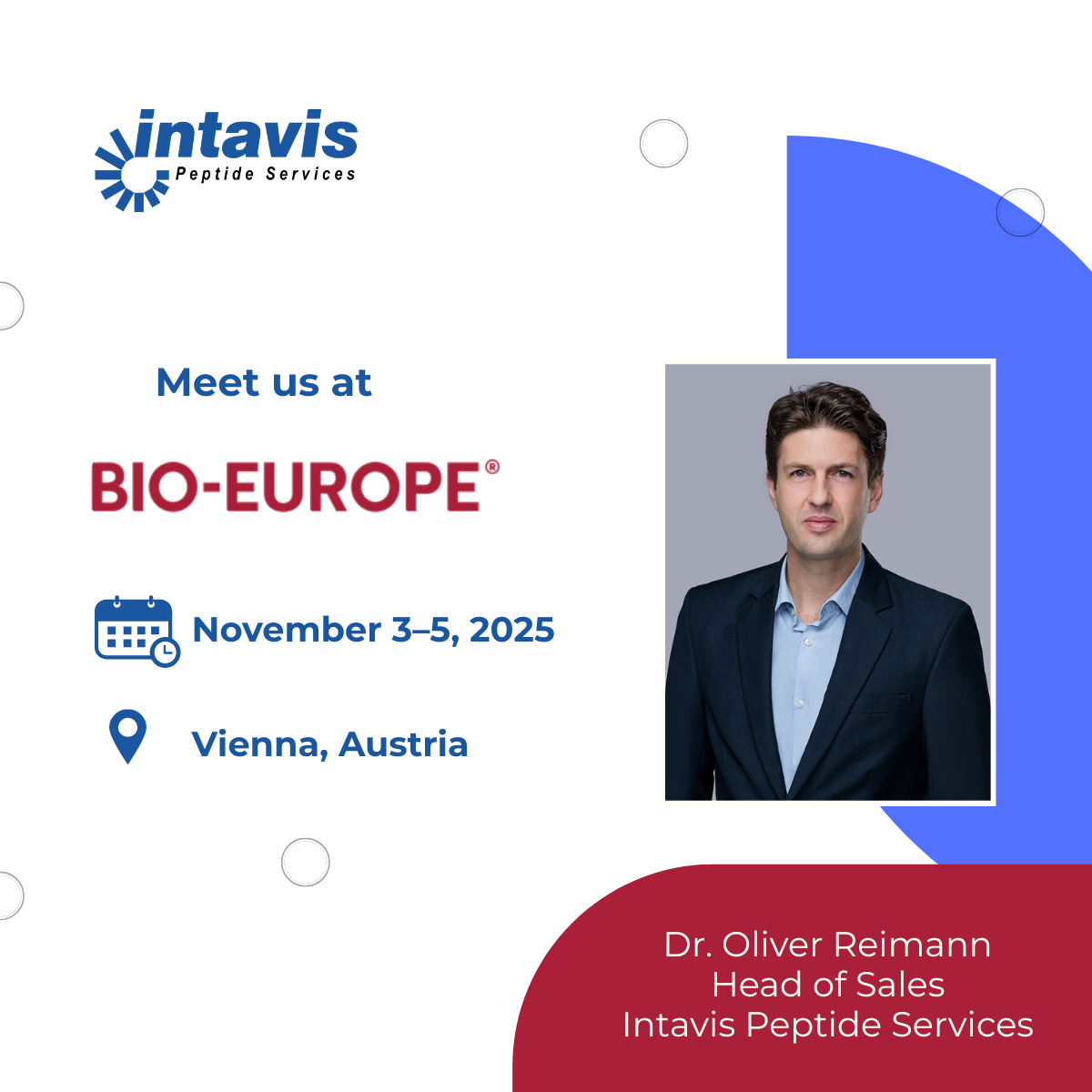 Meet Dr. Oliver Reimann, Head of Sales at Intavis Peptide Services, in Vienna, to discover how our custom peptide synthesis, libraries, and GMP-grade solutions can power your next breakthrough.
